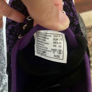 •Purple sneakers with black floral detail in size 6(retail price $24.99) bought a couple years ago and only worn once in store**!