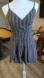 Stylish black and white striped jumpsuit. Features a flattering V-neck and fitted waist. Perfect for any occasion. Good Condition, adjustable straps, black / gray