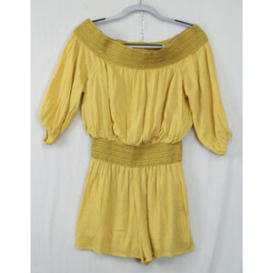 Purple Snow Jumpsuit Shorts Women M Off Shoulder Jacquard Elastic Waist Gold