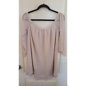 Purple Snow Tan Tunic size small. Cold shoulder style. Has a really nice braided tan strap and then the sleeves are nice and loose. Perfect neutral color to pair with literally anything! Dress up or down. Boho vibes.