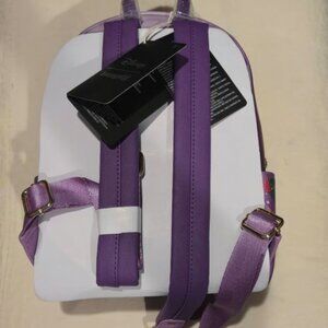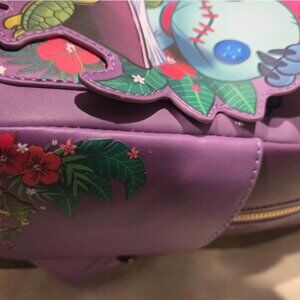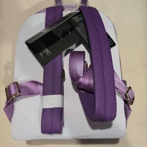 New with tags Purple Stitch loungefly. Was never used. Comes with original tag. Not sure of this is still sold. One of the white bands to hold the strap fell off. Other than that new and never used.