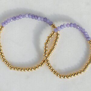 Purple Stone Stretch Bracelet Waterproof Gold Gemstone Stretch Bracelet Stack
