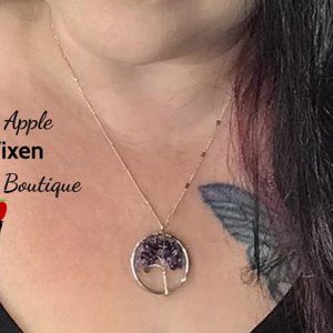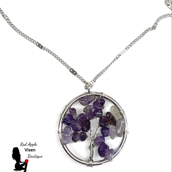 Meet my new favorite! This is a beautiful purple stone wire tree silver necklace. Each necklace is a little bit different by the color and size of the stones used and the way the wire tree is intricately wound. No two necklaces are exactly the same!