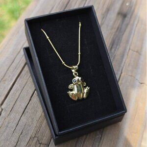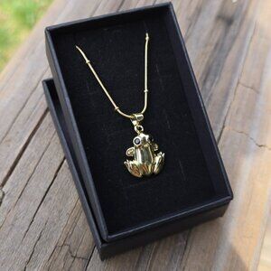 This necklace has a lobster claw clasp, a 20 inch chain and a 2 inch extender. The pendant measures approximately 1.25 inches wide and tall.