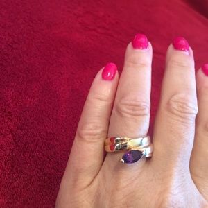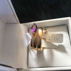 Purple Amethyst liked Stone Ring with gold tone band. New with tag. Great way to enhance your wardrobe without spending a fortune.