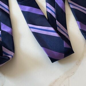 Elevate your style with this elegant purple striped tie. Perfect for any formal occasion.