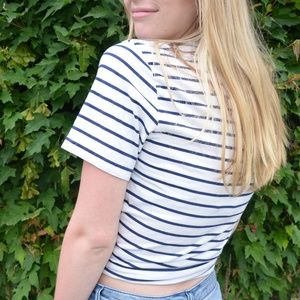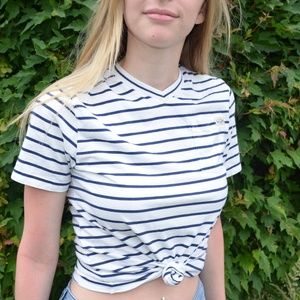 Super fun Ralph Lauren tee - purple stripes, RL patch on the front pocket. Ultra comfortable tee. Boys 10/12 but fits like a women's small! One of my favorite lounge tees, but no flaws! The perfect every day shirt.