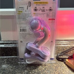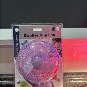 Portable purple stroller clip fan. Ideal for travel and outdoor use.