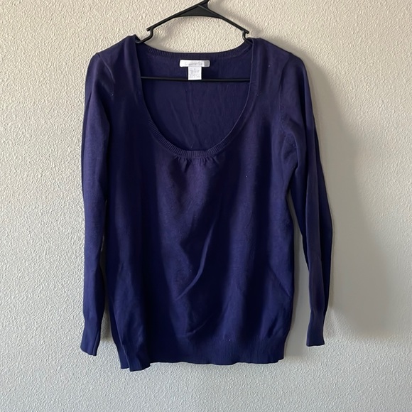 Simple, purple sweater, it’s very light and goes well with jeans or pants.
