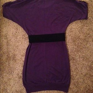Sweater dress is form-fitted and comes with the black belt. This dress is knee length or shorter. Great for the fall and winter season. Great color and in great condition! Comes from a smoke-free, per-free home.