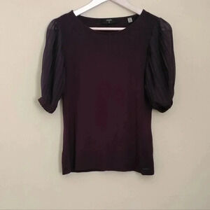 Purple Tahari Top Tulle Pouf Sleeves Sz S/P