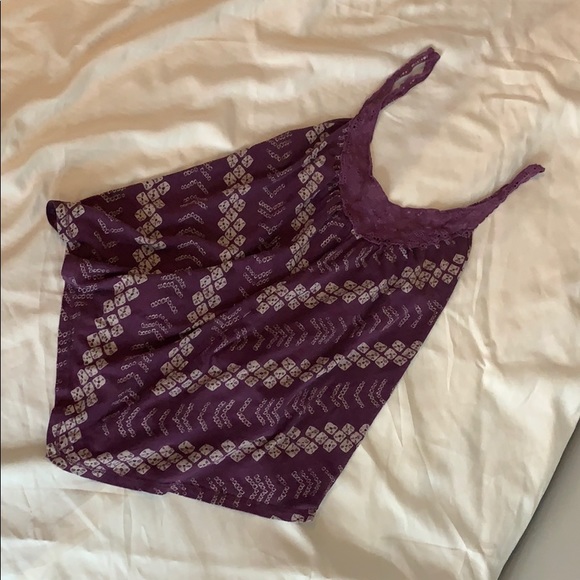 Purple triangle cut patterned tank with lace straps and detail