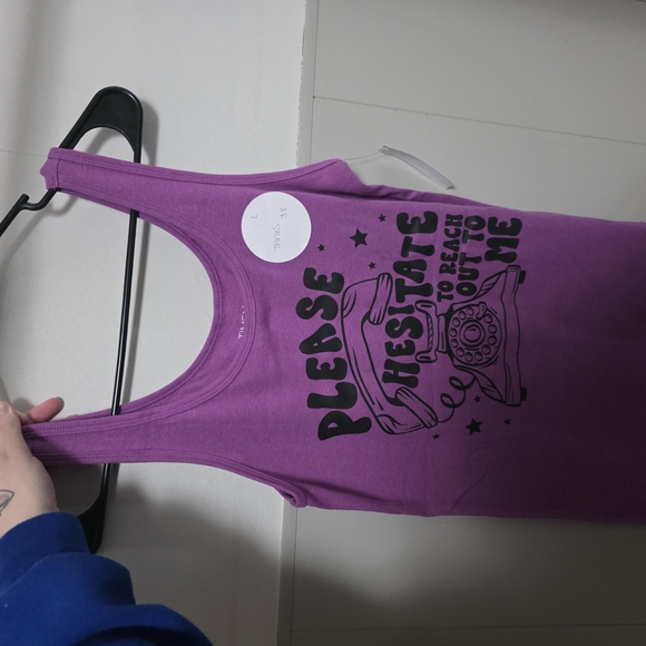 Stylish and stretchy purple tank top with a fun graphic design. Perfect for casual wear. Very soft