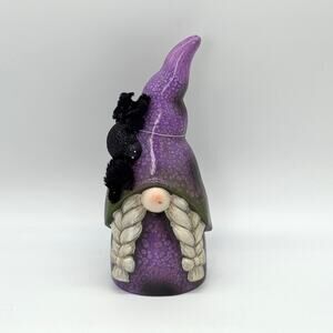Purple Terracotta Halloween Witch Gnome With Fuzzy Glitter Spider 10” NEW