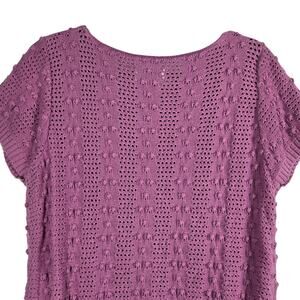 Keywords: purple sweater, knit top, textured knit, short sleeve, small