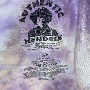 Stylish purple tie-dye t-shirt featuring a Hendrix graphic. Perfect for music lovers.