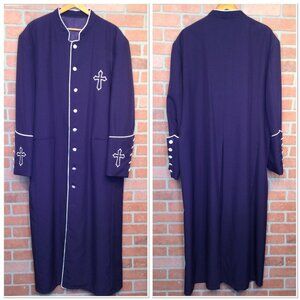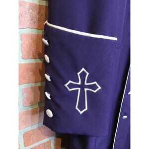 Purple Tony Blake Long Clergy Vestment Pastor Robe Cross Embroidery Button Front
