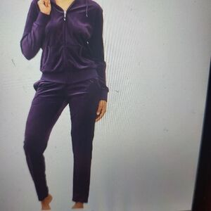 Beautiful Purple Plush 6 Pockets Track Suit.Jacket has 2 wide pockets. Pants have four pockets; two are roomy snap on pockets (great for cell phone) two are side pockets. They are machine washable and I would suggest that you hang dry.It is 60% cotton and 40% polyester. It's so comfy and stylish🤗 Can be worn for sports, business, or just hanging out. It feels great,very lightweight,mad comfortable and can be worn with other accessories! Zipper is beautiful & easy to maneuver:-), good for any day of the week no matter where your going!