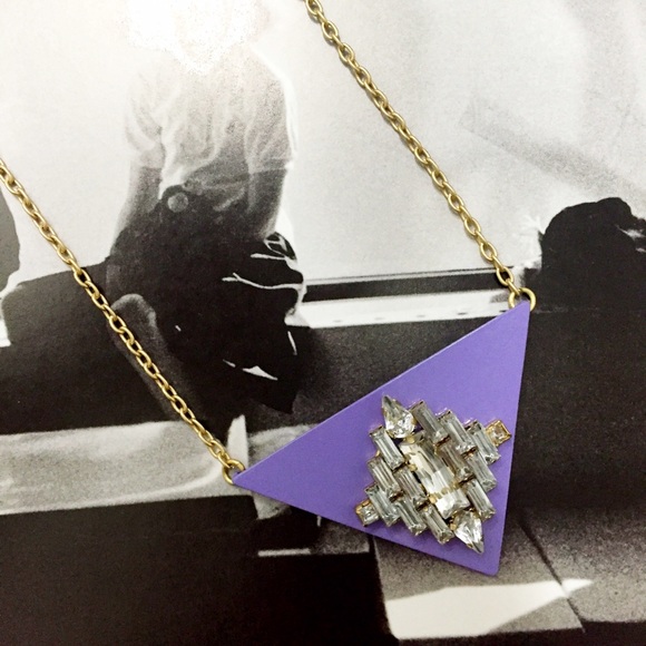 Beautiful purple triangle necklace. Plated base metal, enamel, and acrylic Length: 16"