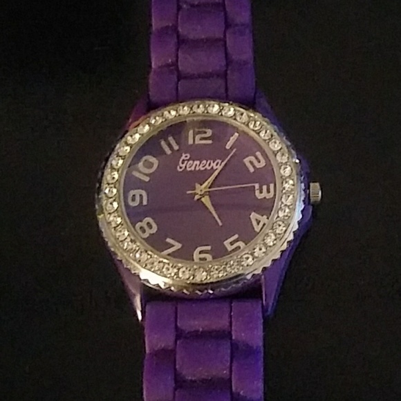 Purple rubber watch with a blingy bezel (Will need a battery)
