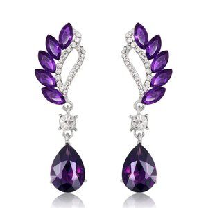 Elegant Purple Waterdrop Wings Shaped Drop Earrings Silver Plated Retro Dangle Earrings Brand New