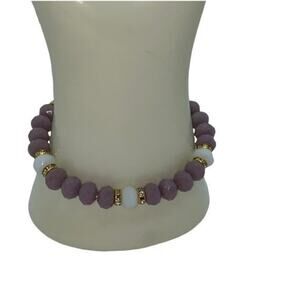 NWT Purple & White Beaded Gold-Tone Tree of Life Pendant Rhinestone Stretch Bracelet