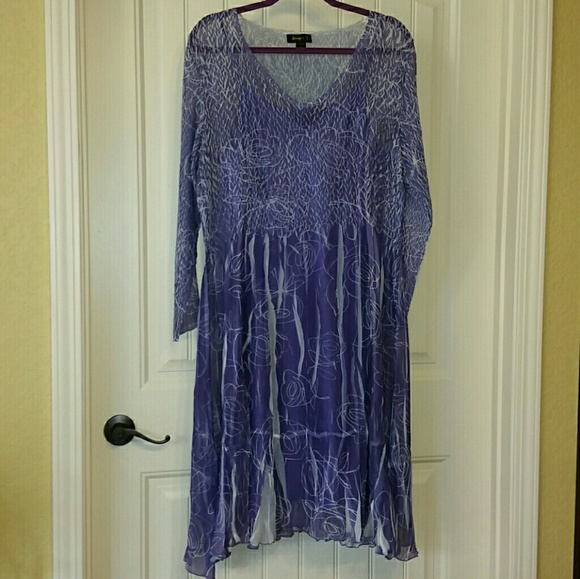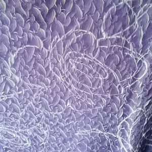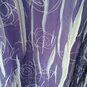 Purple & White Floral Crinkled Chiffon Fabric, Crushed Taffeta Fabric, Light, Long-sleeved, V-neck Dress with Purple Slip
