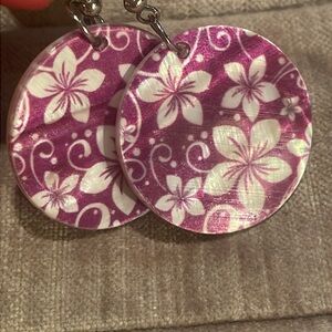 Purple & White Plumeria Floral Mother of Pearl Earrings