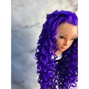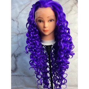 ,Long Lace Front Wig,Kinky Violet Wig,Cosplay Wig