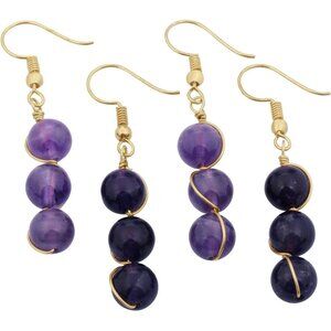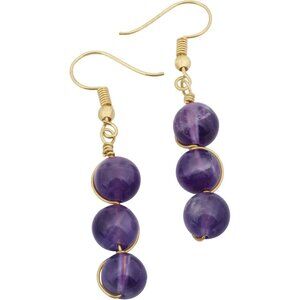 Purple Wire Wrapped Triple Ball Beaded Dangle Trendy Hook Earrings for Ladies
