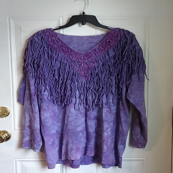 What a great top! The material of this has a bit of a tie dyed look to it. It should bring back some of the Hippie in anyone! It's in very good condition.