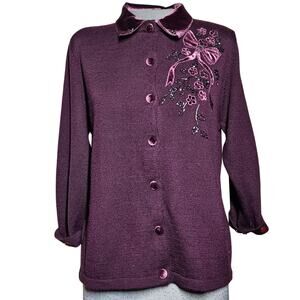 Purple Wool Blend Embellished Sweater Size Small