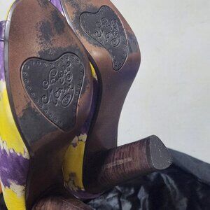 Purple Yellow Heart Open Toe Cloth Heels Size 7.5