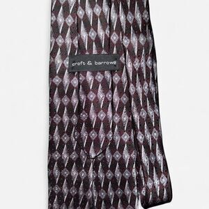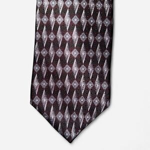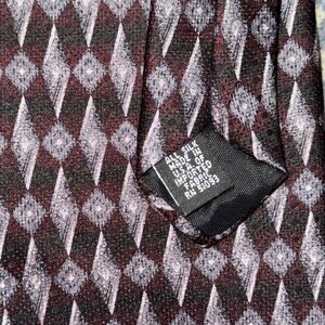 Purple and Black vintage geometric print silk neck tie from Croft & Barrow. 4 inches wide at its widest part.