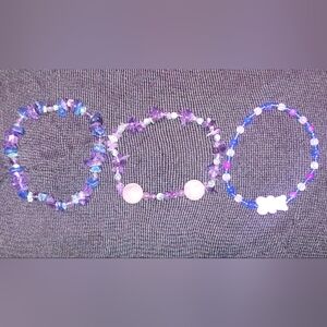 Elegant purple and blue beaded bracelet set, perfect for adding a touch of color to any outfit. Size 7 inch with two 7.5 inch Made with stretchy elastic!