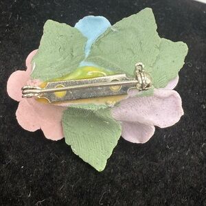 Elegant floral brooch featuring delicate pink, blue, and purple roses. Perfect for adding a touch of charm to any outfit.