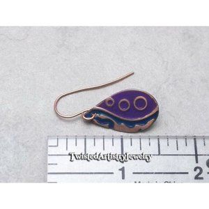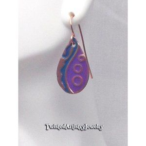 Purple and Blue Enameled Copper Teardrop Dangle Earrings One-Of-A-Kind Handmade