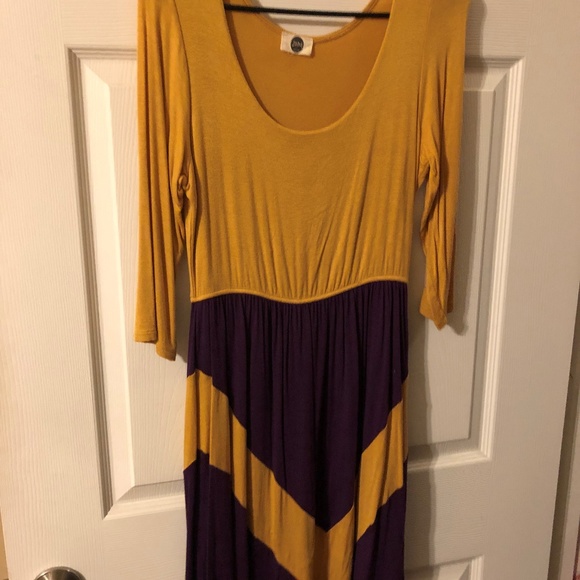 Knee length purple and gold dress...extremely cute with boots and a waist belt...worn twice