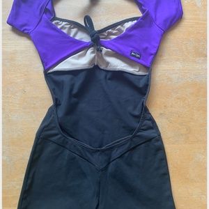 Purple and Grey Jo Jax capped sleeve Unitard