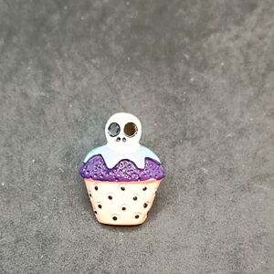 Add a spooky touch to your child's outfit with this adorable cupcake skull pin. Featuring a charming purple and pink design, it's perfect for kids who love unique accessories.