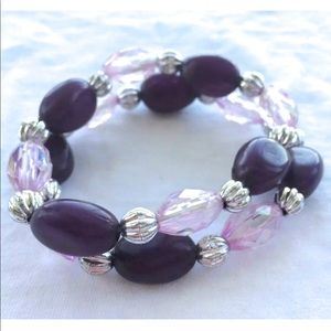 Two Layered Purple and Silver Beaded Stretch Bracelets