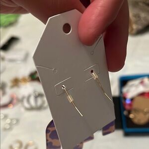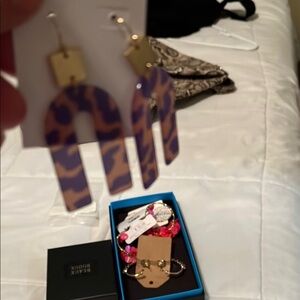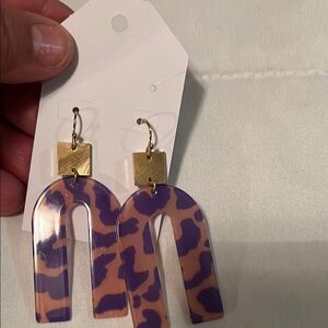 Stylish purple and tan geometric earrings with a unique design. Perfect for adding a pop of color to any outfit.