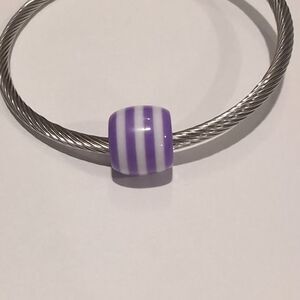 Purple wand White Striped Charm for Pandora Style Bracelet