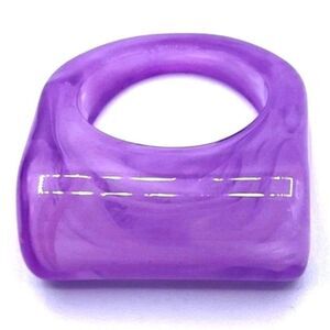 Purple and White Swirl Acrylic Geometric Barrel Chunky Statement Ring Size 8.5