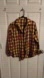 Stylish "Why Dress" flannel button-up shirt with purple and yellow checkered pattern. Features a sequin tiger design for a bold look.