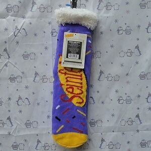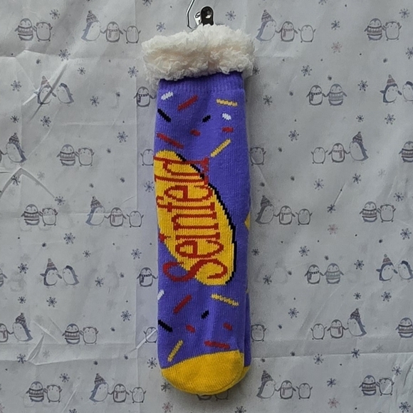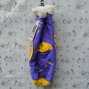 Cozy and stylish women's socks in vibrant purple and yellow. Perfect for adding a pop of color to your outfit.
