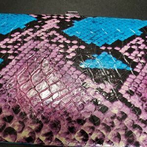 Pretty wallet is purple and blue and has a snakeskin pattern. Wallet has some corner wear - see photos.