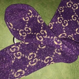 Glitter intwined Gucci socks made in Italy, the socks hold up so well and are the perfect accent to add to any outfit! Be sure to turn heads and get tons of compliments with this little accent piece!