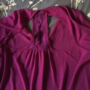 See through purple blouse with lace back details