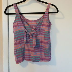 Really trendy top with ties in the back. Super with with black or dark denim.